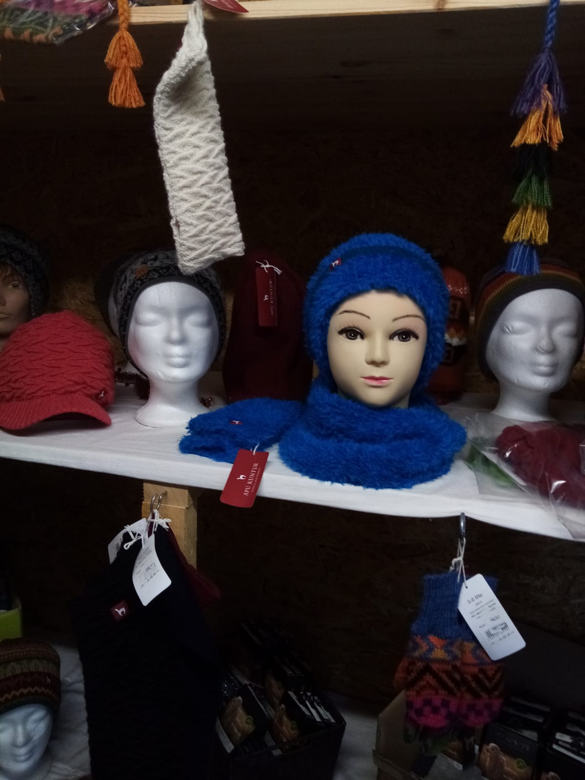 In unserem Hofladen haben wir eine große Auswahl an Produkten, die aus Alpakawolle hergestellt wurden.